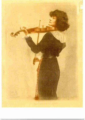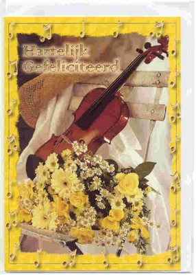 I am collecting violinpostcards. Here are some examples. The painter Henri Berssenbrugge (1873-1959) has painted in 1915 the French actor, violinist and singer Odette Myrtil. From this painting they made this postcard. The clothing of violinwoman has changed through the years, compared with L.Brava or J.Jansen. “Hartelijk gefeliciteerd” means “ Hearty Congratulations”