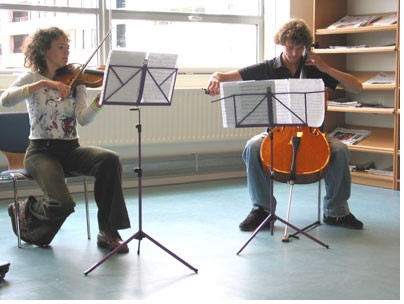 My friend played some jazzy improvisations and I got the STRAD (a bit trembling) in my hands, taking it more carefull than my violin with the woodwormholes in it. I played an Irish reel or gig (folkmusic), the only piece I can play without notes in front of me and gave it back to her. My violinfriend also said that he was a bit nervous during playing on this special instrument. Of course Birthe can make a much bigger tone on that instrument, but I could not hear the differences.