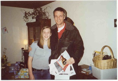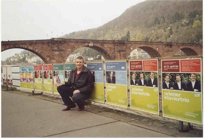 Also I made on my non-digital old-fashioned camera some pictures of Heidelberg. Today they had the foto's in the druggist. Perhaps this was a good exercise for the moment Joshua Bell himself will visit Sydney in Heidelberg when he is in the neighboorhood, but perhaps he will ring her by phone first, which would be more normal. Perhaps I can sent the adress of Sydney to Leah, the manager of Joshua? Before that I made a foto near the old bridge in Heidelberg, where Sydney made a foto of Janine, who was on the posters near the bridge. Now I only got a aprilguide of Heidelberg with Janine's picture on it, which I held in my right hand (and in my left hand on the first foto). Her poster was removed, but there was a poster of the cellist Maisky who played in Heidelberg, just behind me, as you can see, the man with the beard and moustache. He played at the festival of Janine Jansen in Utrecht, Netherlands, between Christmas and new year.