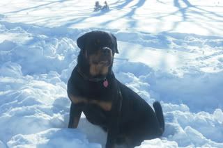 So, after 8 months, I am finally learning how to post pictures on v.com. As many of you know, my rottweiler died in 2007, and we brought home a new baby boy in May 2008. He is a beautiful healthy boy. It's too bad that rottweilers have such a poor reputation, exploited by owners who use their power for bad purposes. And sadly, this type of dog is not for the lazy and/or ignorant person either. Rottweilers are intelligent and hardworking creatures. They need owners who are willing to take the lead and exert all their energy in a positive way. You should not get a rottweiler if you are planning on giving him or her tons of time and attention. Rottweilers are good for people who have a farm because they are herding dogs.