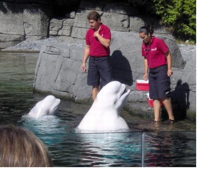 Well despite the early morning departure for Vancouver and then again to come home, I've made it through the weekend and what a weekend it was! I arrived just in time for a 1:30pm violin lesson which gave me a lot to think about and work on, as usual. Why must there be so much to do in learning an instrument like the violin? I will work as diligently and as hard as I can though. I've already done some good work this morning. After my lesson we made our way across the walkway to rehearsals. We worked on the Albinoni Adagio for Strings, Bach d minor keyboard concerto and the choir piece we were singing. It was as entertaining and fun as the rehearsals during YAE were! Lots of humor and fun but we still got a fair bit accomplished. The next day I got to play tourist for a couple of hours and went to the Vancouver Aquariam in Stanely park. I had never been before and got some good pictures (see below)! The afternoon was spent at the Stanley theatre in "rehearsals" for the concert. We didn't actually get to play much but it was socially a lot of fun and at times things got to be rather boring as we waited around for things to happen. At one point we were in our dressing rooms waiting to be called up to the stage for a cue check and that never happened, then dinner never arrived until half an hour before the concert began. It was an interesting project to put together. The "Peace It Together" project brought together almost 30 teens from Palestine, Israel and Canada to discuss the conflicts in the mid-east and get everyone's perspectives and experiences in the conflict. There were 7 groups of the teens paired together with representatives from each of the 3 countries and each group made a short film that interpreted the conflicts and perceptions of the crisis in the mideast. I found a website on the internet where you can actually watch some of the films that the students made. It was so exciting to perform for a packed hall and to witness the reactions to the music and the films. How often after playing something like Albinoni's Adagio for strings are you going to hear lots of cheering or after a film made in under 2 weeks by students who have never laid hands on film equipment before? It was a pretty cool experience.