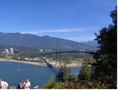 Lions Gate bridge view from Stanley Park looking across to North Vancouver