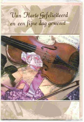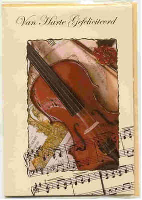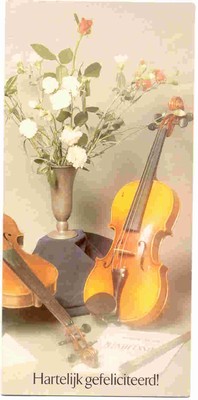 In the case with all cards that people have sent to me in my life, I found 3 old cards with violins on it. Hartelijk gefeliciteerd means: Hearty congratulations. On that last card the sheetmusic is from Mendelssohn. The sheetmusic on the first card is from Handel.