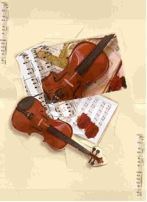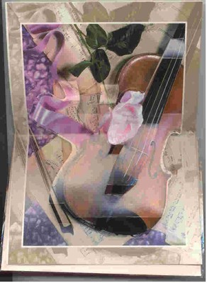 I have also 2 2-dimensional so called pop-up cards. It was difficult to make a scan which shows 3 dimensions, but it is a strange effect to see the violin going down when you open the card. Perhaps I have to make a foto of these 2 cards and of the foto a scan next time.